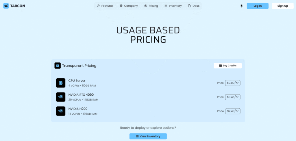 Targon follows a straightforward usage-based pricing structure: