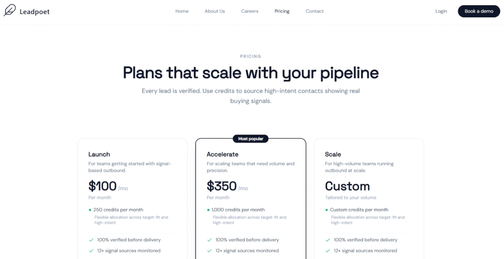 Leadpoet operates on a subscription and credit basis: