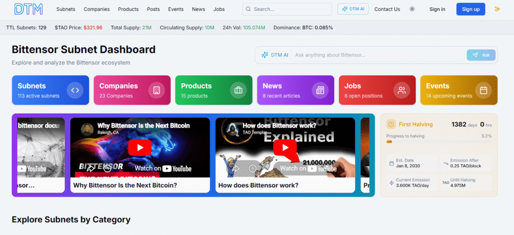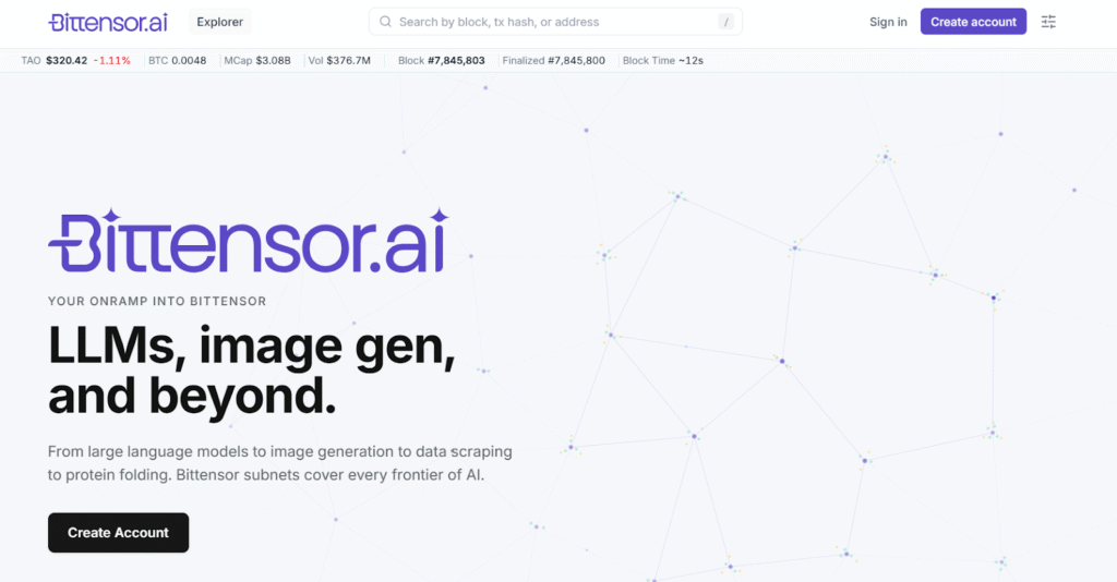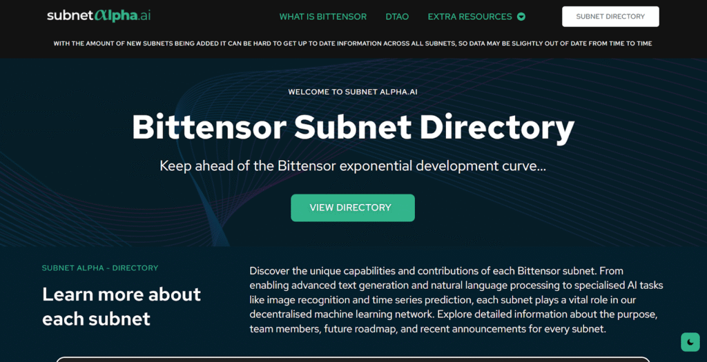 Bittensor.ai serves as an official entry point into the network, providing a subnet directory, blockchain explorer, and access to live activity across the system. It offers essential visibility into teams, transactions, and network structure.