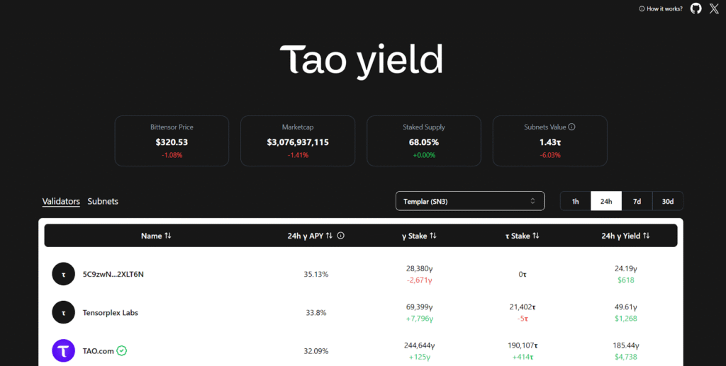Tao Yield focuses on optimizing staking outcomes by providing clear insight into validator performance, APY calculations, and effective take rates. It uses on-chain data to deliver accurate comparisons across validators, helping users make informed delegation decisions.