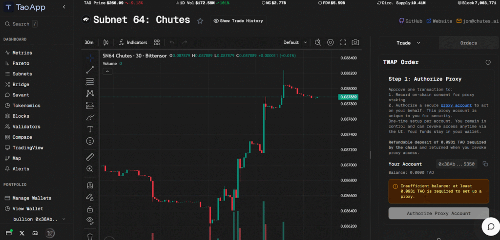 This tool is specifically designed for Bittensor subnet “$ALPHA” tokens (since most of them have thin liquidity), one of the simplest options for retail users.