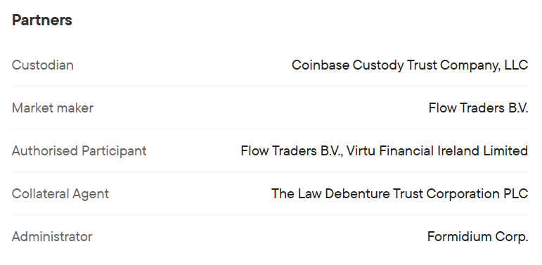 This structure ensures that the ETP remains fully backed at all times, with clear visibility into the underlying assets.