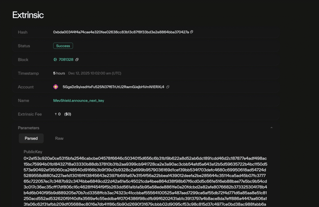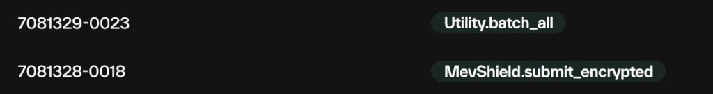 - Here we see extrinsic 18 is a MEVshield submitted transaction