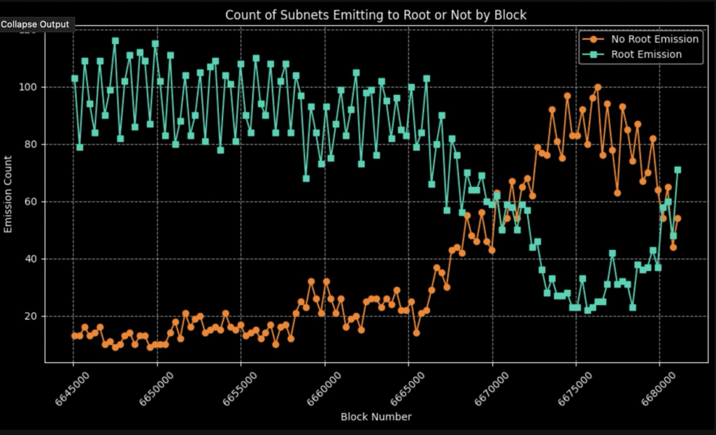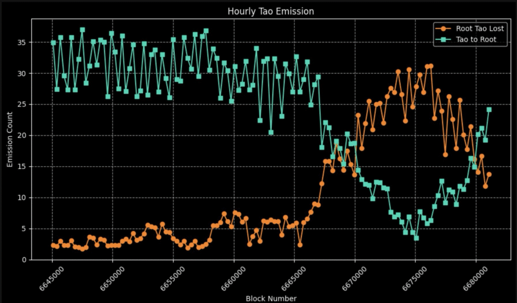 Now, of course, every subnet has different emission, and price, but we can determine how much of the emission to root was emitted vs. how much was not.