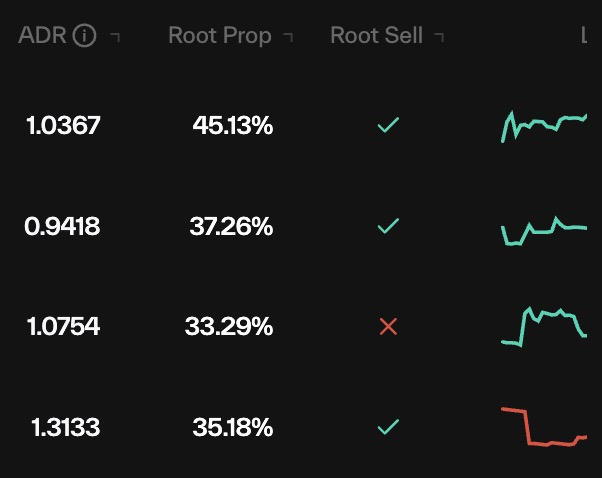 The numbers are changing hourly. You can track subnets that are emitting to root or not at https://taostats.io/subnets, and looking at the Root Sell column: