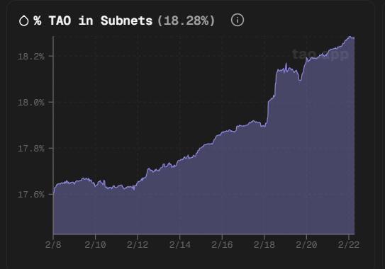 Numbers can mislead when they are stripped of context. Today, roughly 18% of $TAO is staked into subnets. At first glance, that figure feels underwhelming.