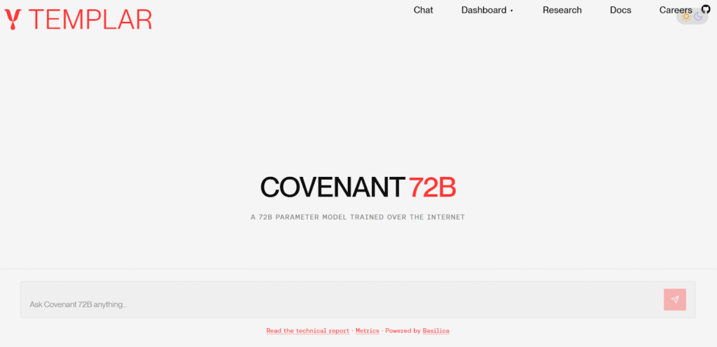 The Covenant-72B model is the largest decentralized LLM pre-training to date, it proves that Templar’s architecture can scale to world-class models.