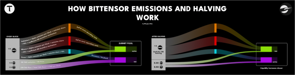 The TAO part of emissions is what will be cut in half in December 2025. To understand what this really implies for supply, liquidity, and price dynamics, we need to look deeper into how these mechanics work in practice.