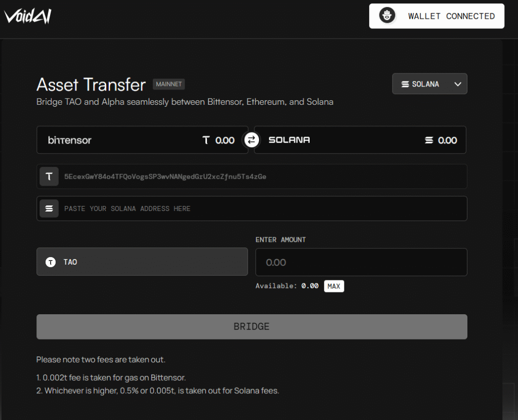 In July of this year, VoidAI created an automated smart contract bridge between Bittensor and Solana to remove manual steps and ensure that transfers were trust-minimised.